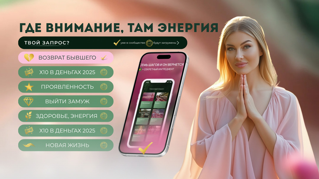 Если ты устала топтаться на месте. Если хочешь денег, любви, энергии, уверенности. Если хочешь начать жить по-другому — тебе сюда.