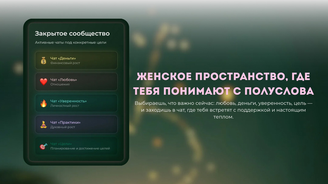 Это пространство, где ты можешь делиться своими результатами, задавать вопросы, получать поддержку и находить таких же девушек, как ты.