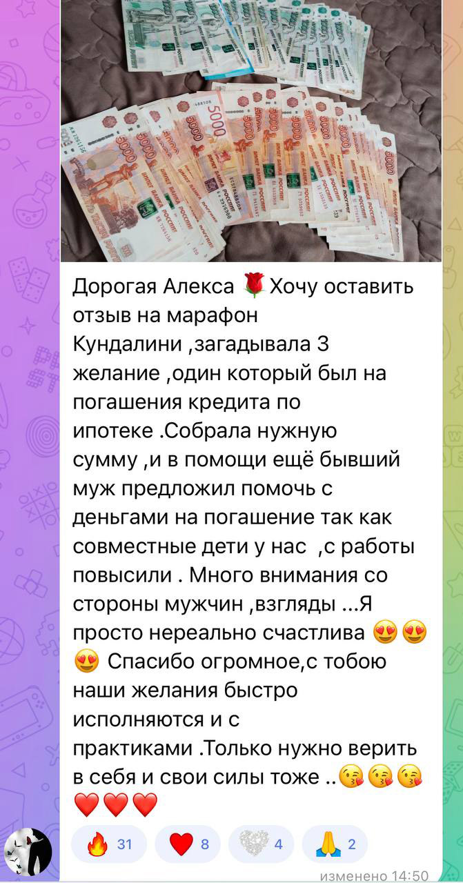 Это глубокая энергетическая практика, где мы поднимаем энергию Кундалини по всем чакрам и наполняем своё желание силой каждого уровня. В процессе мы активируем тело, поле и подсознание так, чтобы желание не просто визуализировалось, а запускалось как энергетическая программа на исполнение.
